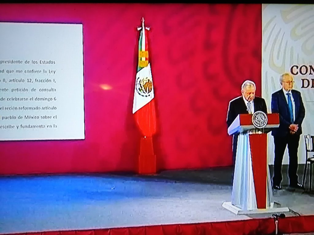 “Voy a dar una conocer nuestra decisión de entregar un escrito a la Cámara de Senadores para la realización de la consulta al pueblo de Méxixo sobre el posible enjuiciamiento, previa investigación y en el marco de la legalidad, de acuerdo al debido proceso de los expresidentes de México de 1988 a la fecha, hasta el presidente Enrique Peña Nieto”
